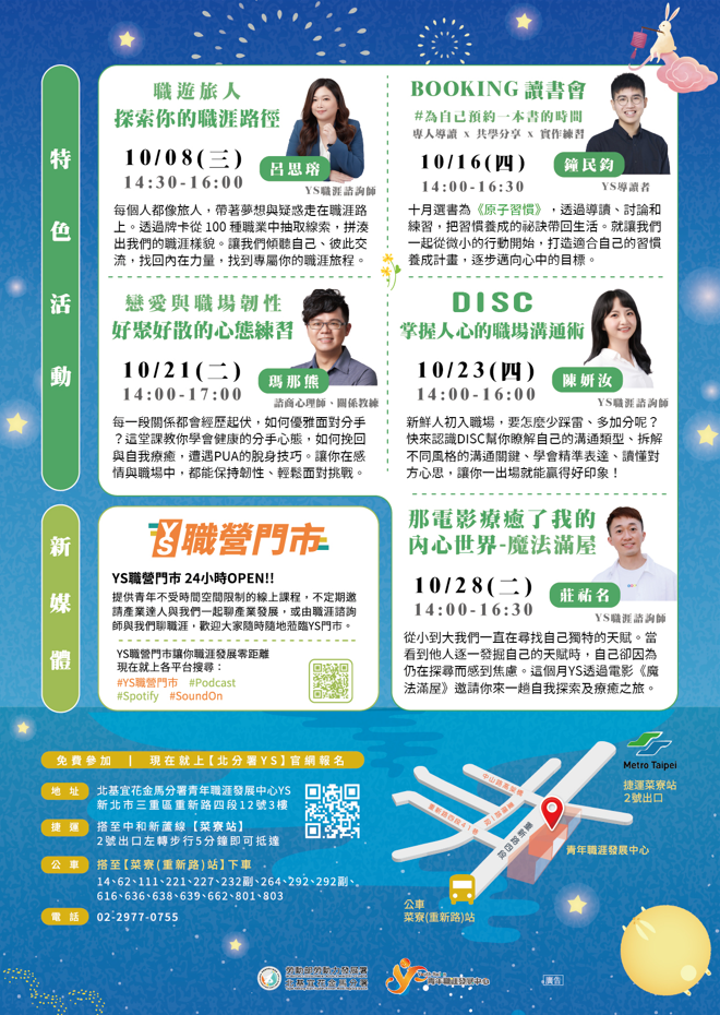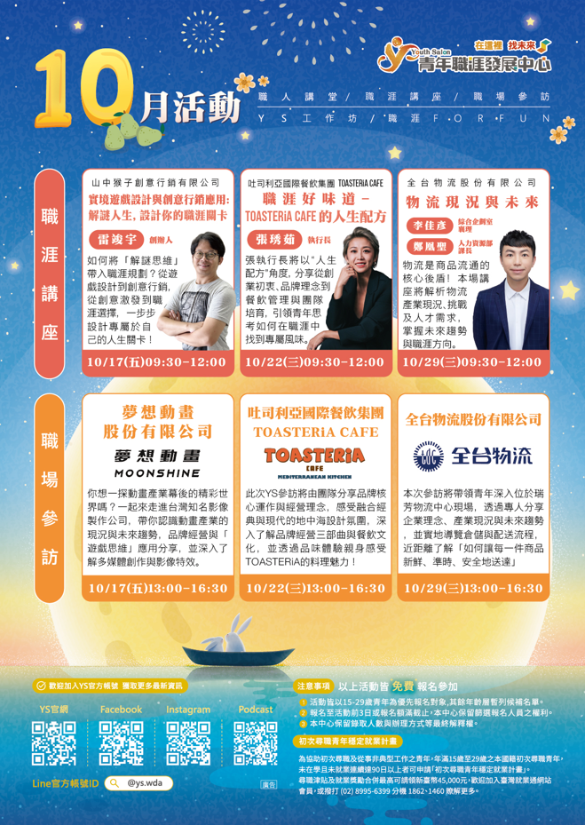 【勞動部勞動力發展署 北基宜花金馬分署 青年職涯發展中心】十月講座參訪活動資訊