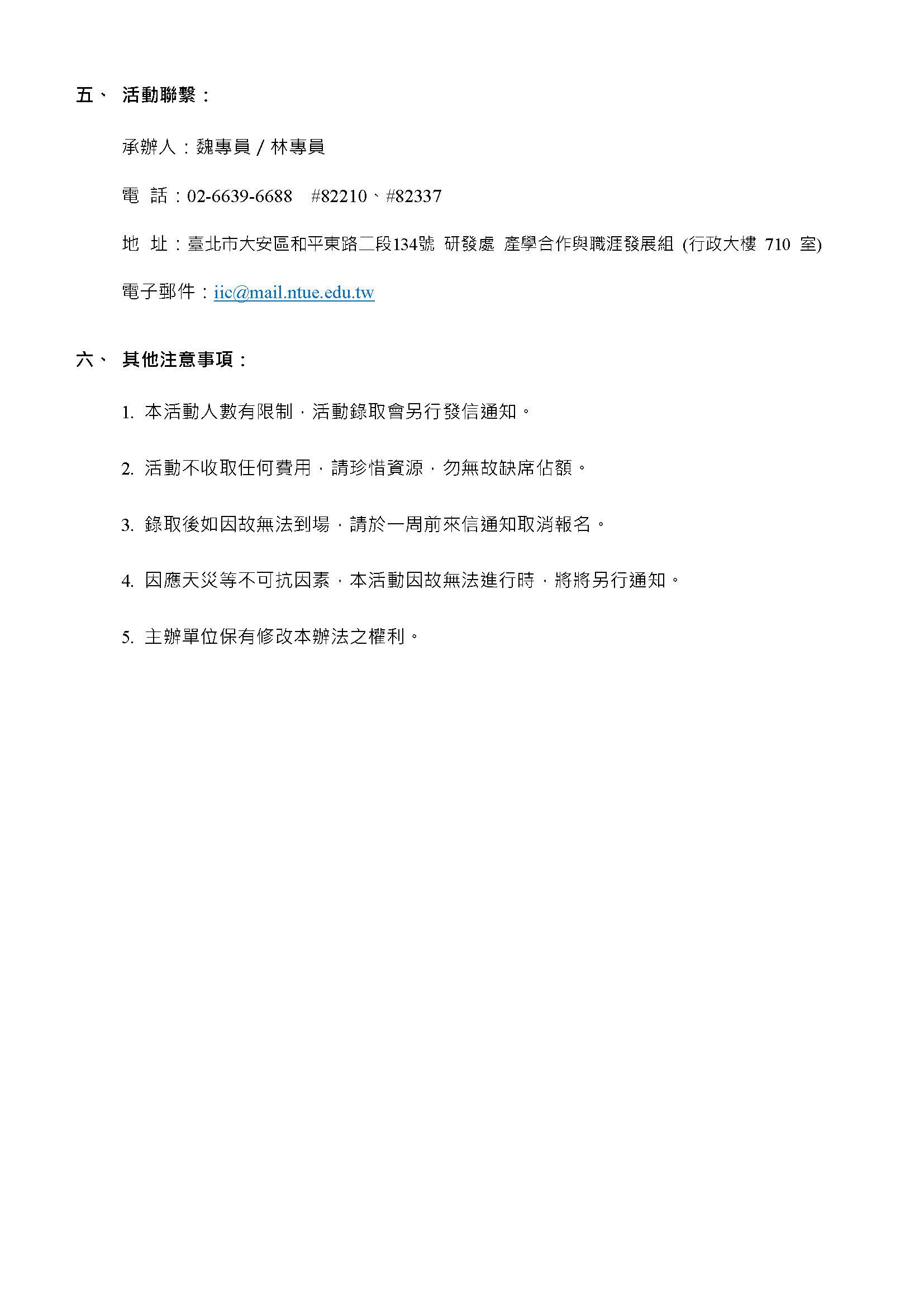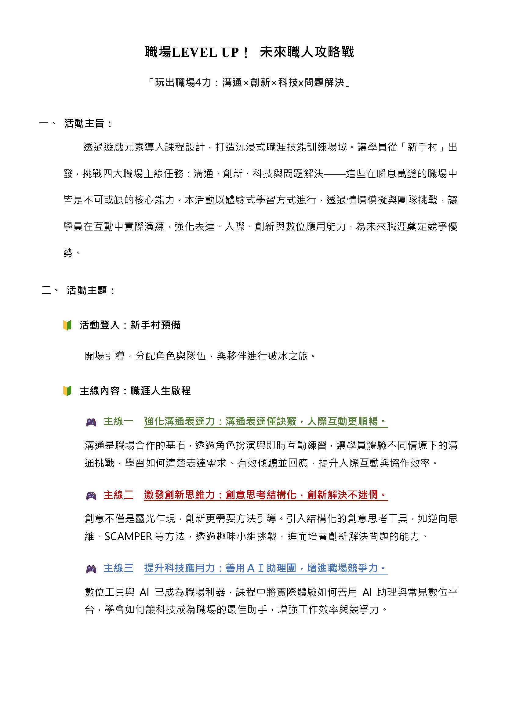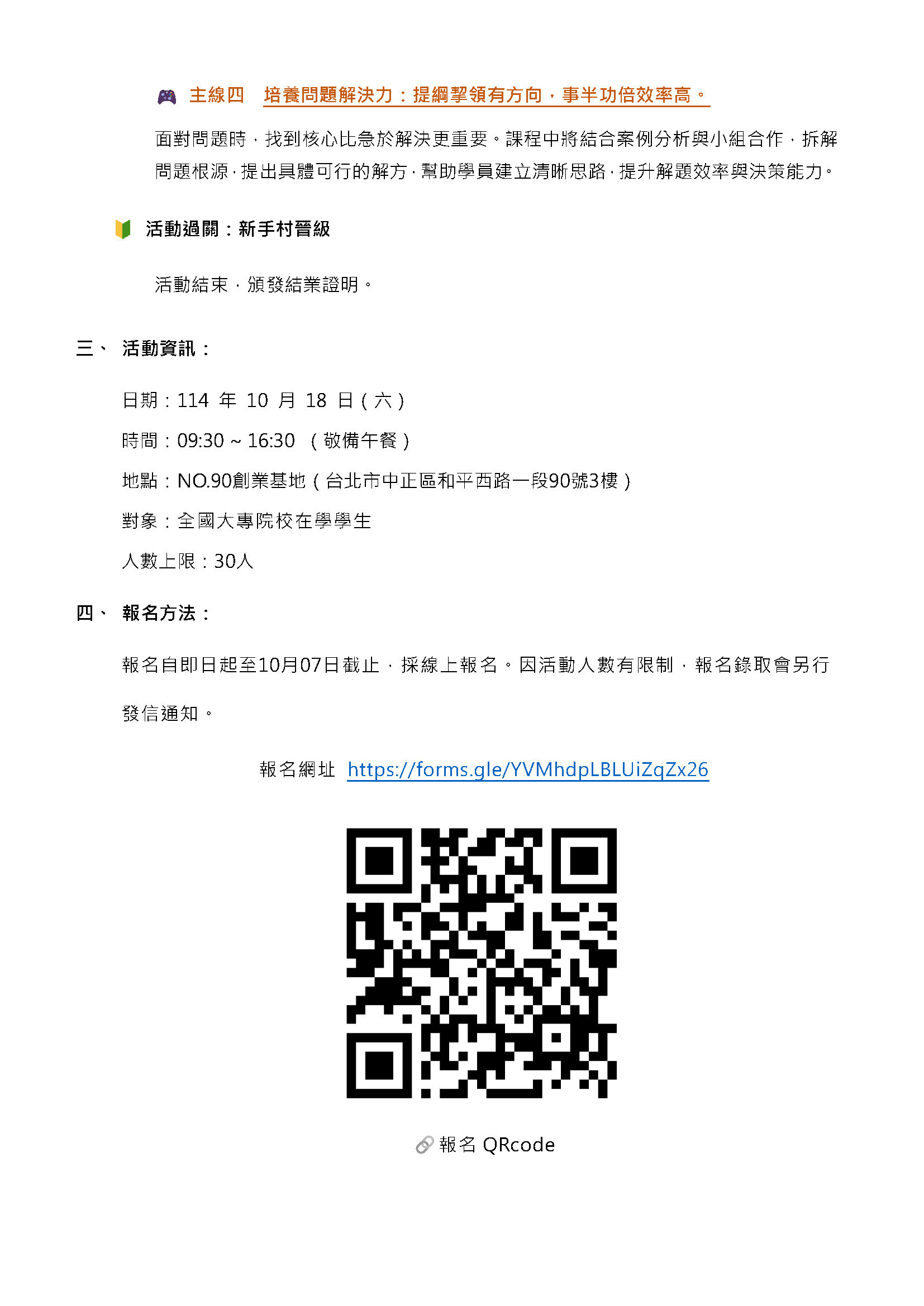一、依據國立臺北教育大學114年10月2日(北教大研發字第1140220184號)來函辦理。 本校辦理「職場LEVEL UP!未來職人攻略戰」,敬請協助公告活動訊息,並鼓勵生學踴躍參與,請查照。