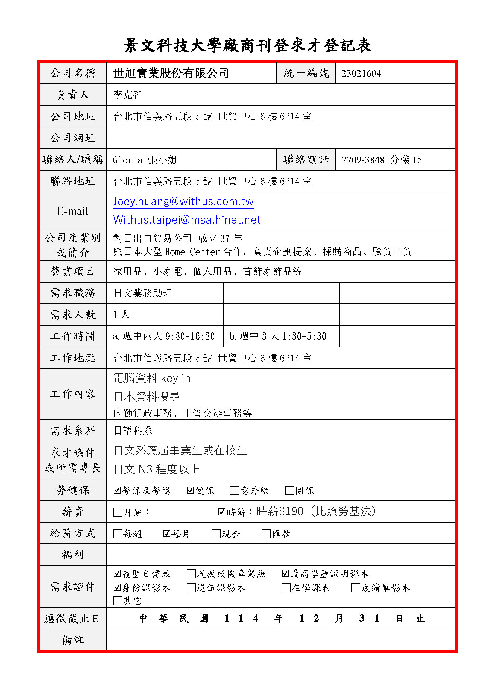 景文科大廠商求才登記表(世旭實業股份有限公司)2025年10月27日刊登_.pdf