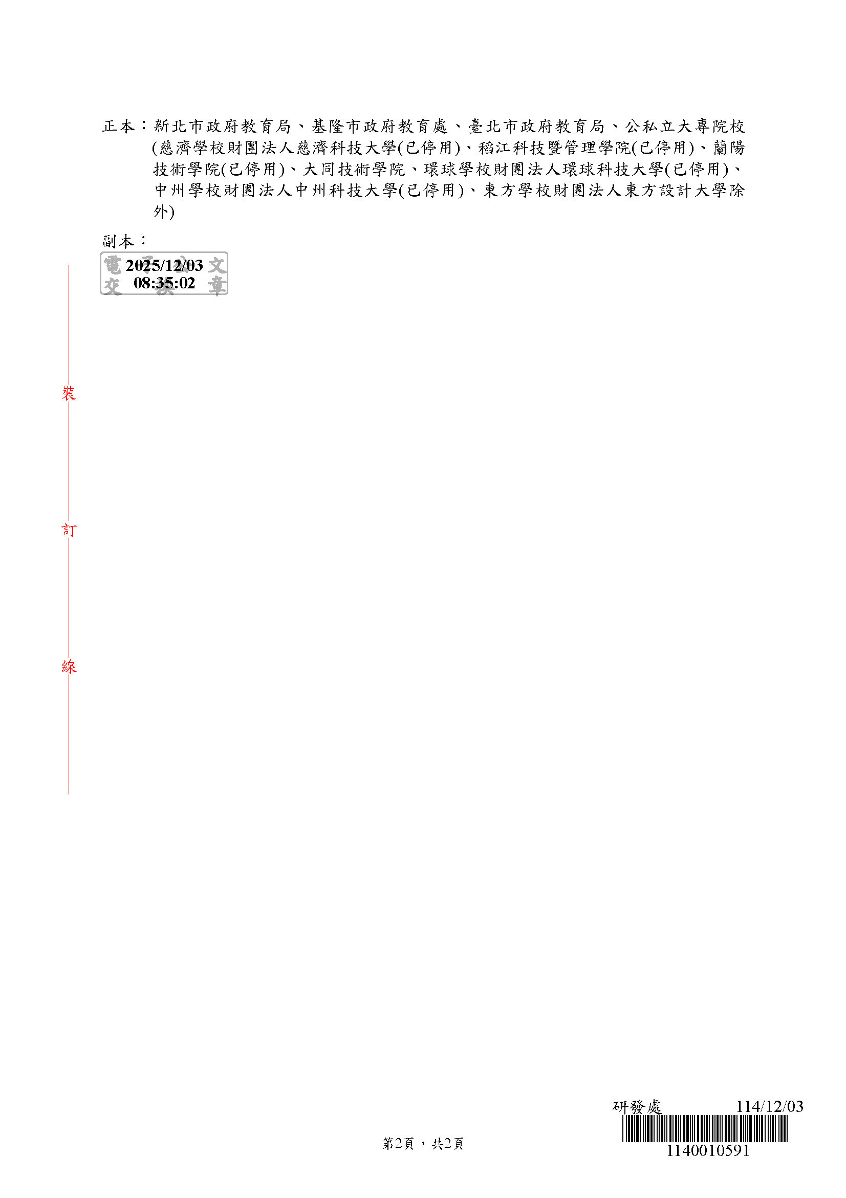 一、依據臺北市政府工務局公園路燈工程管理處114年12月2日(北市工公人字第1143069219號)來函辦理。