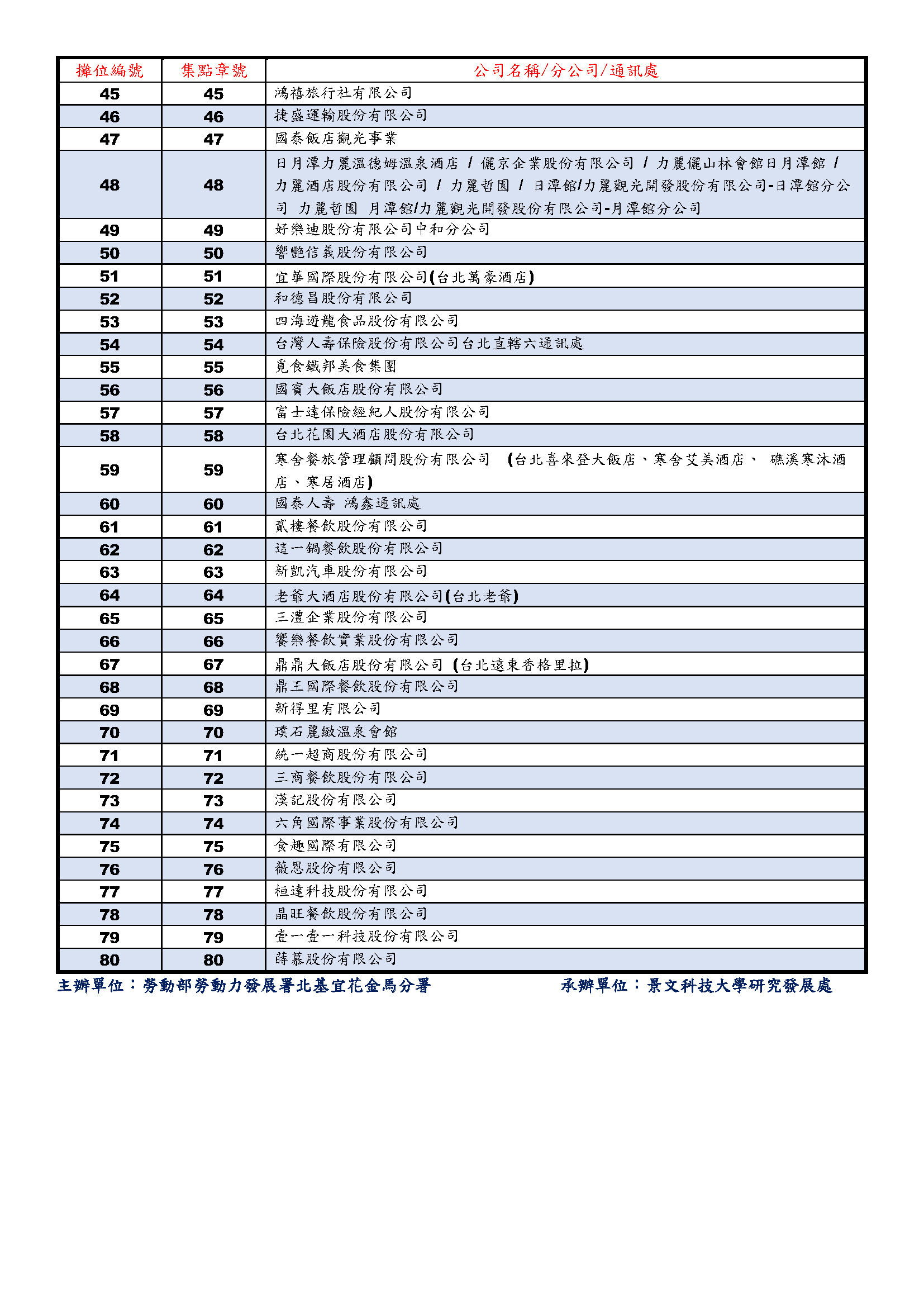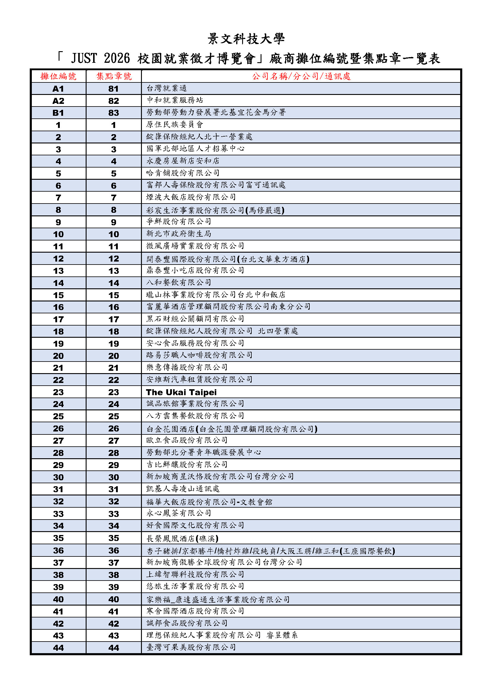 003_景文科技大學 JUST 2026 校園徵才博覽會廠商攤位編號暨集點章一覽表